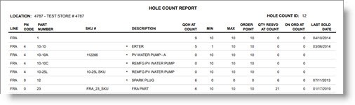 Note: Typically, a count is for "stocked" parts in the store's inventory file. However, some "non-stocked" or NIF parts recently sold and returned to the store may also exist in the store's inventory file and are included in the count if they have a quantity available "on the shelf".