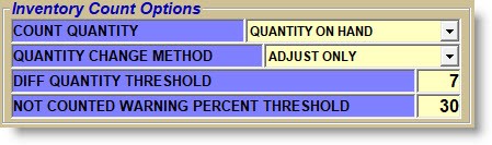 - 'Adjust Only' - Checks the 'Adjust' checkbox and disables it so that it cannot be changed on the INVENTORY COUNT ADJUSTMENT screen.
