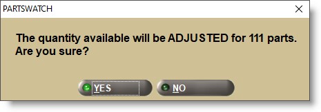 When 'Adjust' is selected, the part's current 'Qty Avail' in the store's inventory file is updated if any part has a non-zero 'Diff Qty'.