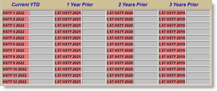 If set to 'MONTHLY', the history fields display 12 monthly totals (total # of units sold, less returns) for each year: