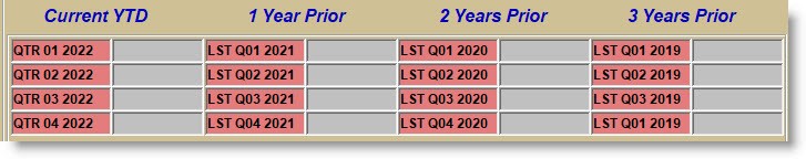 If set to 'QUARTERLY', the history fields display 4 quarterly totals (total # of units sold, less returns) for each year: