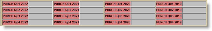 Regardless of the 'AGE INVENTORY' setting on the SYSTEM CLOSE SCHEDULE screen, quarterly purchasing histories display for the current and 3 previous years.