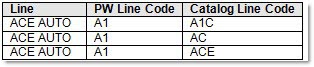 When the selected line is tied to more than one Catalog code, which is set up in the Catalog Vendor Setup screen, the part could be found under more than one of those Catalog codes. For example, PartsWatch Line Code A1 might be tied to the following Catalog Line Codes: