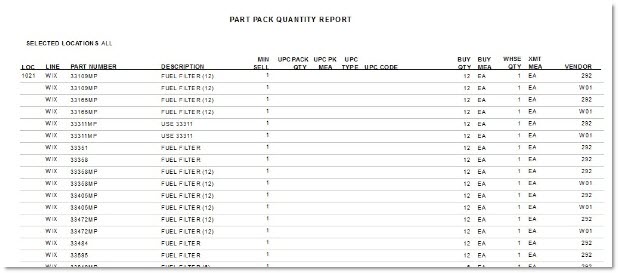 UPC setups can be reported on the PACK QUANTITY REPORTS screen.