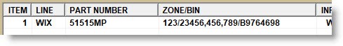 If a value exists in the 'ZONE' and/or 'BIN' fields on the MAIN PART ENTRY screen when the ZONE / BIN SETUP screen is added from the update, the system will copy the values to the respective 'ZONE 1'/'BIN 1' fields on the ZONE / BIN SETUP screen.