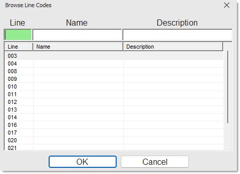 - Right: Enter a Line Code or Supplier Code. If one is selected from the browser window, the code will display in the field.