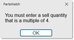 Enter the minimum quantity of the part in focus that must be sold at Point-of-Sale. The system forces the quantity to be sold to the 'MIN SELL' quantity in order to continue with the sale. If a value other than the 'MIN SELL' is entered in the 'SELL' field and the 'Enter' key pressed, the system prompts to enter the correct sell quantity.