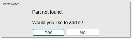 - If the part number is not found, the system prompts to add it.