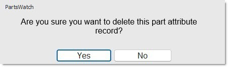 Click the 'Delete' to permanently delete the attribute set up for the part in focus. The system will prompt you to continue.