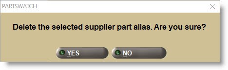With the supplier row highlighted in the grid, click the 'Delete' button at the bottom of the grid and the system will prompt to make sure the alias should be deleted.
