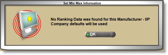 If the 'SALES CLASS' codes aren’t set up for a line, clicking the 'SET BY CLASS' button prompts that no ranking data was found and the system defaults will be used.