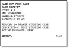Paid Out From Safe Receipt