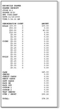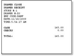 The following is an example of the Drawer Receipt, and is representative of the Receipt Envelope Receipt: