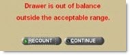 Once closed, the drawer close cannot be undone. If the "Drawer Out of Balance" prompt displays, recount or have the manager count the drawer. The Manager can access the Drawer Management screen to view the system-tracked drawer total and determine the best course of action before committing to the drawer close.