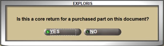 If a defective exchange transaction is on a sales order, along with other parts sold with a core charge, if the Core Return modifier (COR) is selected, the system prompts: