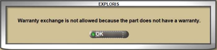 The returned part must have a warranty. If not, a prompt opens and the exchange is not allowed: