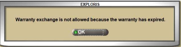 The warranty cannot be expired. If the warranty has expired, a prompt opens and the exchange is not allowed.