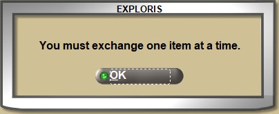 The exchange quantity must be '1' unit. If a quantity greater is entered, the system prompts:
