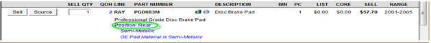 - Position - Displays in blue standard text and contains info such as front, rear, left, and right. Position can also be used to designate which part something is attached to or referring to. For example: for a pulley, the position could be 'SMOOTH PULLEY' or 'GROOVED PULLEY'.