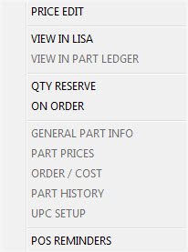 on an item row in the catalog results grid or the 'Interchange' window to display the following menu: