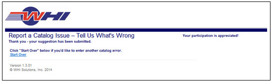 'REPORT CATALOG ISSUE' - Displays the Report a Catalog Issue web page to report issues found in Catalog data.