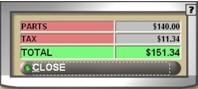 The following pop-up displays. The pop-up may vary in size depending on the other items that affect the total. The 'CLOSE' button closes the pop-up and returns to the CATALOG screen.