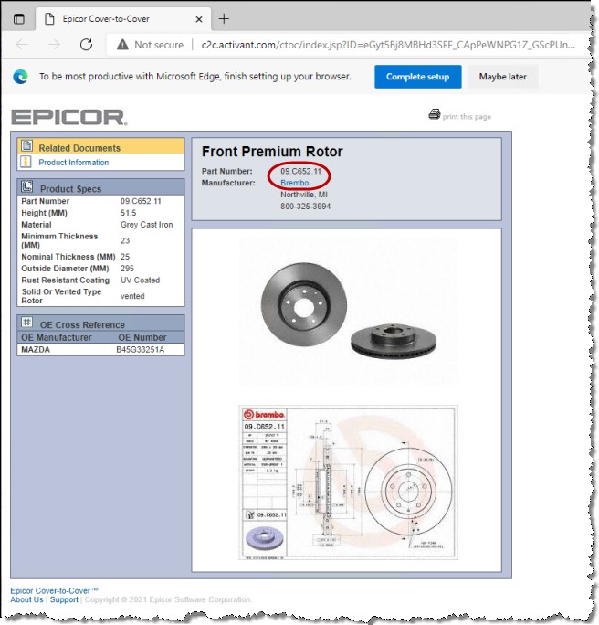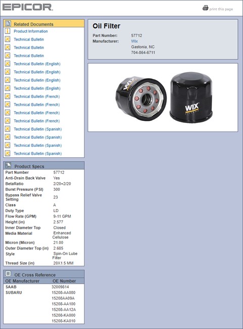 Displays a clickable image thumbnail of the returned part results that brings up the Epicor Cover-to-Cover webpage. Note: Clicking the camera icon also yields the same results.