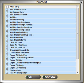'BUYERS GUIDE' - Acts like a "reverse lookup" for catalog parts. Specify a part number, brand, or part type to obtain a list of vehicles that the specified part fits.