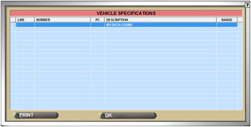 'VEHICLE SPECIFICATIONS' - Opens the 'VEHICLE SPECIFICATION' window.