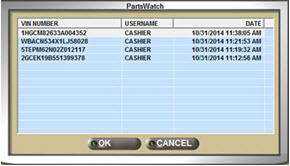 Click the 'VEHICLES' button to display the 'VEHICLES' window. The window automatically tracks the vehicles that have been looked up for a particular customer. Vehicles may also be manually added to that customer’s list.