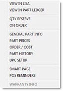 Displays a window with diagram and other details about the part when Smart Page information is available. A pop-up displays stating "No Smart Page data was found for this part" when no Smart Page data is available. Option displays only when the WHI Catalog is enabled for the store.