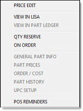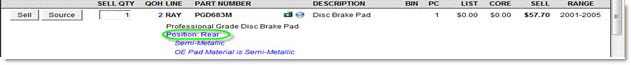 POS Reminders display in red italic text. These are set up for each part in the Main Part Entry screen. Each part can have 0, 1, or many POS reminders.