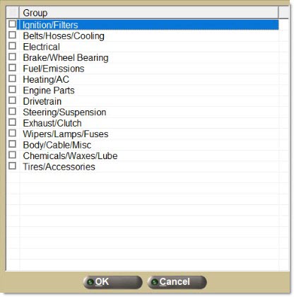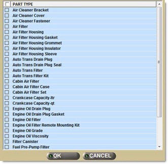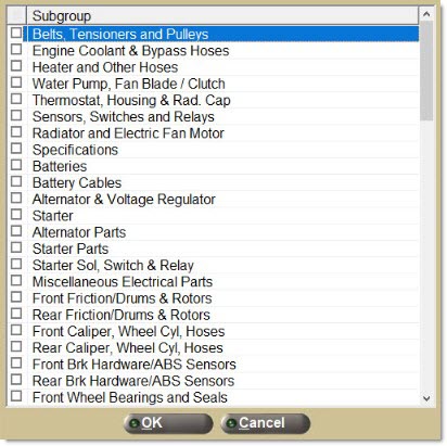 Displays a breakdown of the broader range of part type descriptions or subgroups. Required to conduct a successful part lookup. Accelerator key is 'Alt' + 'U'.
