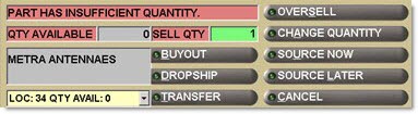 When attempting to sell an item that does not have sufficient stock, the 'Insufficient Quantity' window displays.