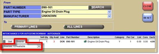 'Avail In Store/Sources' - Results will only include parts that have an available quantity in the store and/or at preferred sources.