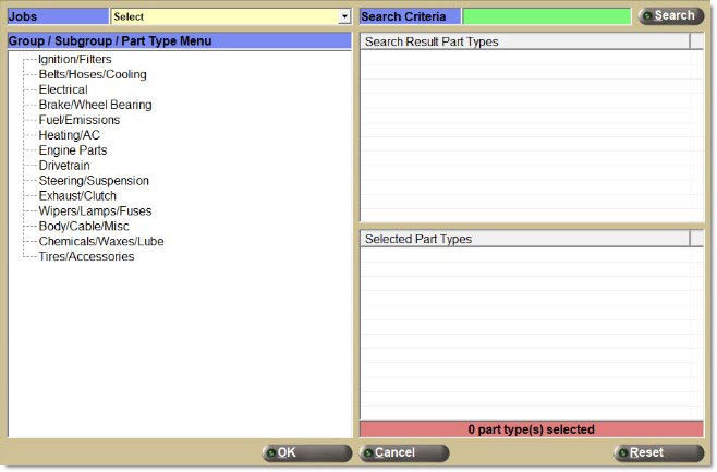 Allows selection of a previously set up "job" that is made up of parts that are usually sold together for a single fix.