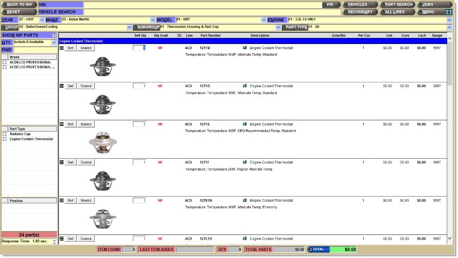 Enter the parameters for the part lookup in the Catalog screen. The parts return.