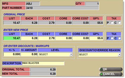 Click 'No' to cancel the sale of the write-in part. Click 'Yes' to continue and to display the 'Price Edit' window.