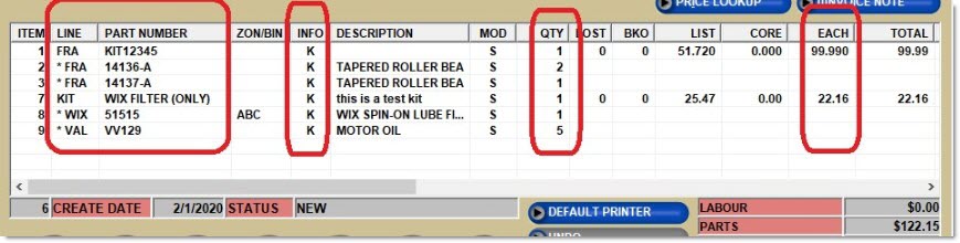 - Note that the invoice displays a QTY number for the KIT part and all components. Note: The QTY for each component is the 'Qty in Kit' multiplied by 'Kit Sell Qty'.
