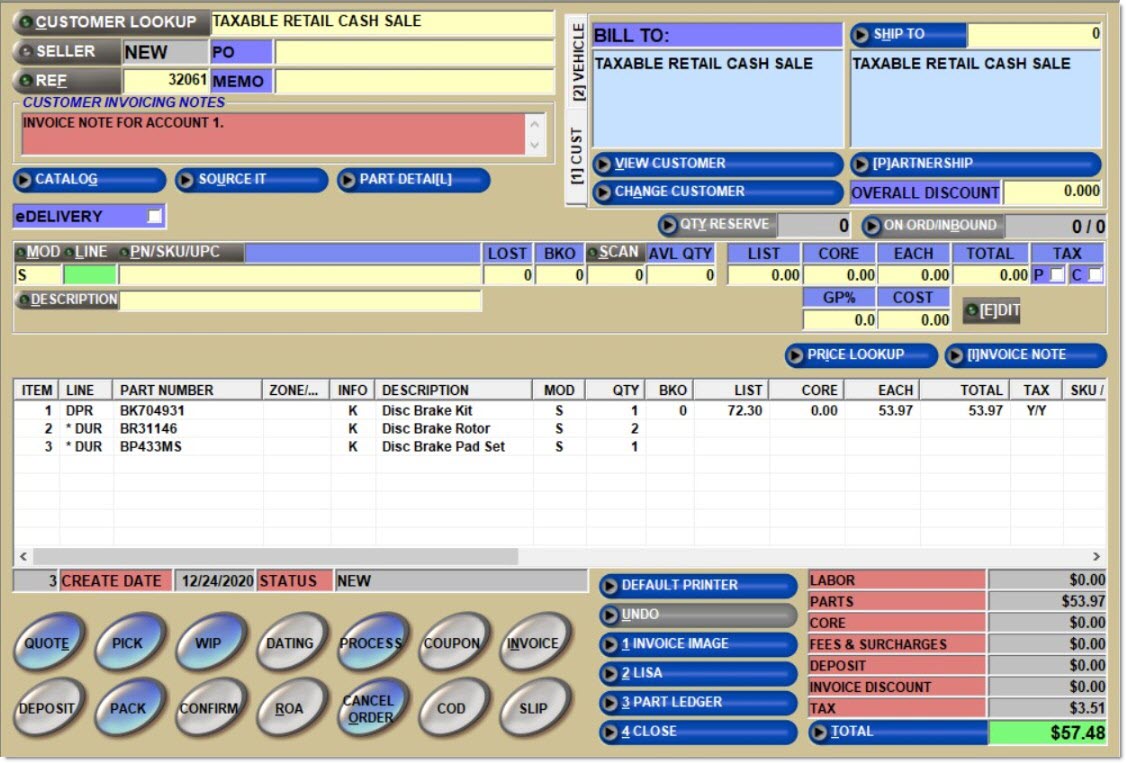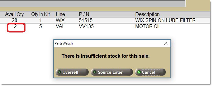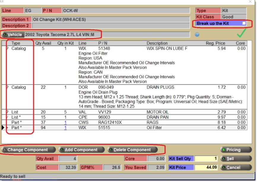 Optionally choose to "break up a Kit" and sell parts separately using regular customer pricing for all parts added to the sales order. Note: Taxes and fees will apply for each part, all parts can be "sourced" on the ADVANCED SOURCING screen, and the application does not track a Kit sale.