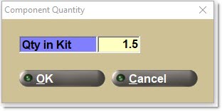 Enter the 'Qty in Kit' for any kit component (if user-defined at setup).