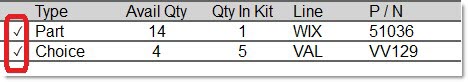 - For a KIT, the system displays the 'Qty Avail' and 'Kit Price' when they are known, when all of the parts for all of the components have been selected.