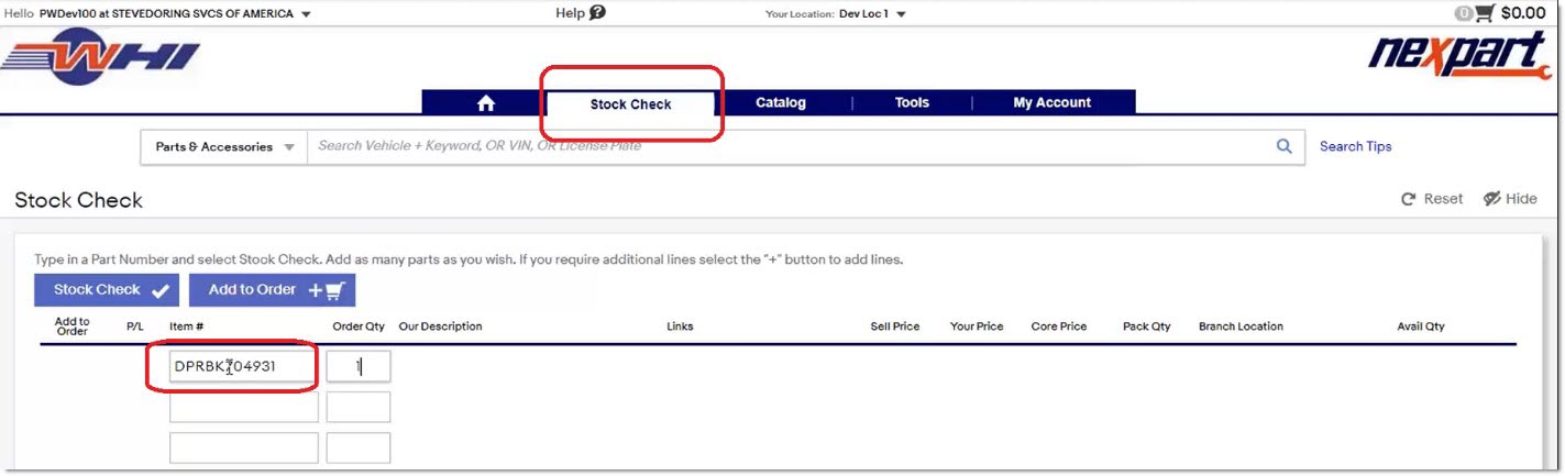 For a catalog or interchange lookup, or user-entered manual stock check: