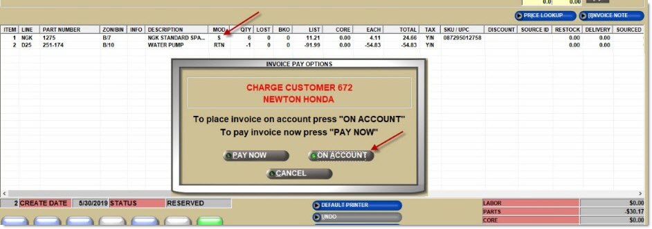 With a signature pad set up and enabled, each time the 'On Acct' or 'Invoice' button is clicked to finalize an invoice, the system checks for the following: