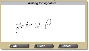 When the invoice print is initialized and the ticket qualifies for signature capture, a pop-up opens showing the device screen.