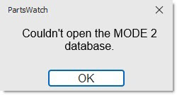 - If Mode 2 is not available, the system will prompt, "Couldn't open the MODE2 database." One or more additional pop-ups may display as PartsWatch attempts to access cached data.