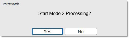 PartsWatch will be disconnected from the database and the terminal will be put in Mode 2.