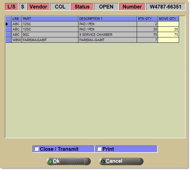 The Return Manifest Detail screen is used to display the detail on an 'Open' or FINAL manifest that has not been transmitted to the vendor and to 'Close', or 'Close and Transmit', a manifest.
