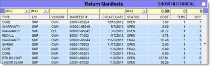 Return Manifests Grid
