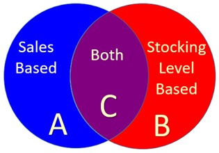 Order quantities are based on the higher of a stocking level calculation (Min, Max, or Order Point over quantity available), or a sales calculation (weighted average sales per month over quantity available). This 'Order Method' combines an ASPM Order with one of the five stocking level methods (e.g. 'Order to Min', 'Order to Max', 'Order Min to Max', 'Order Average Min Max', 'Order to Order Point').
